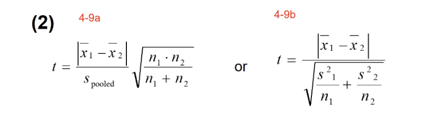 다르지 않은 경우는 9a로! 큰 경우는 9b로, t를 구해서 student t 를 어떤 신뢰수준에서 신뢰구간을 정하고 비교하는 방법으로 한다