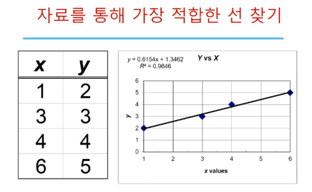 최소 제곱법 적용하는 원리를 보여주는 그림이다.