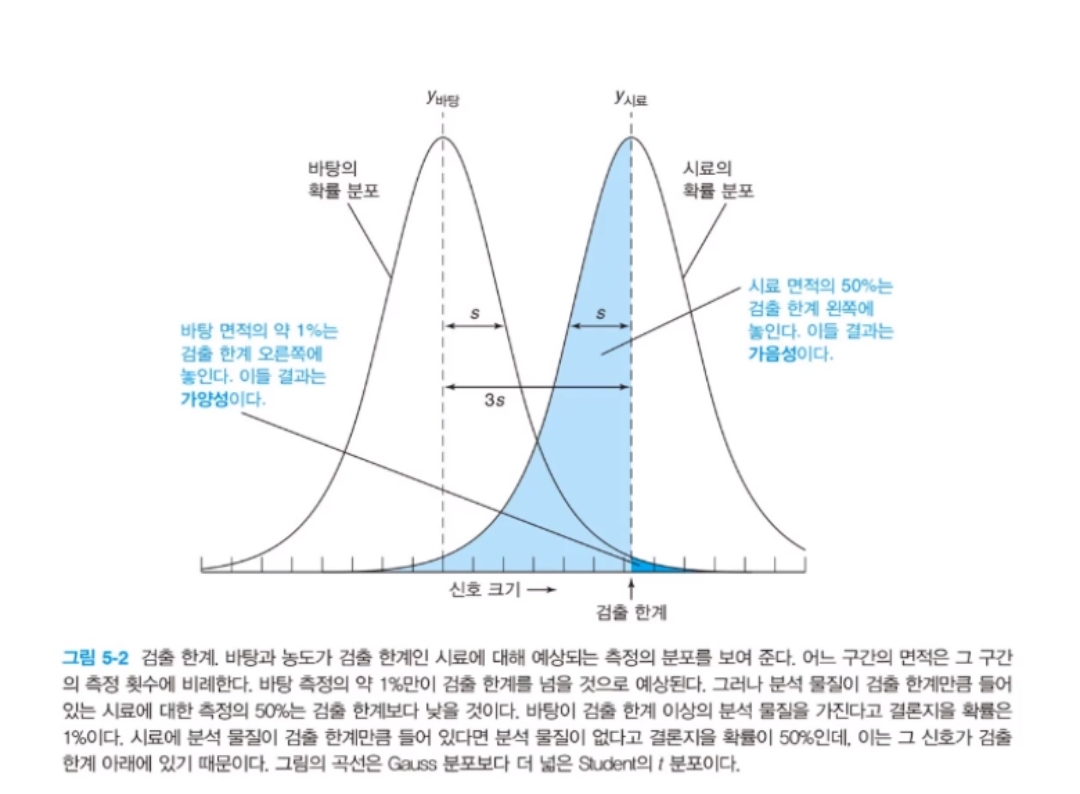 바탕 시료가 갖는 평균과 표준편차가 있고, 바탕이 아닌 분석 물질이 들어있는 샘플의 평균과 표준편차도 있다.