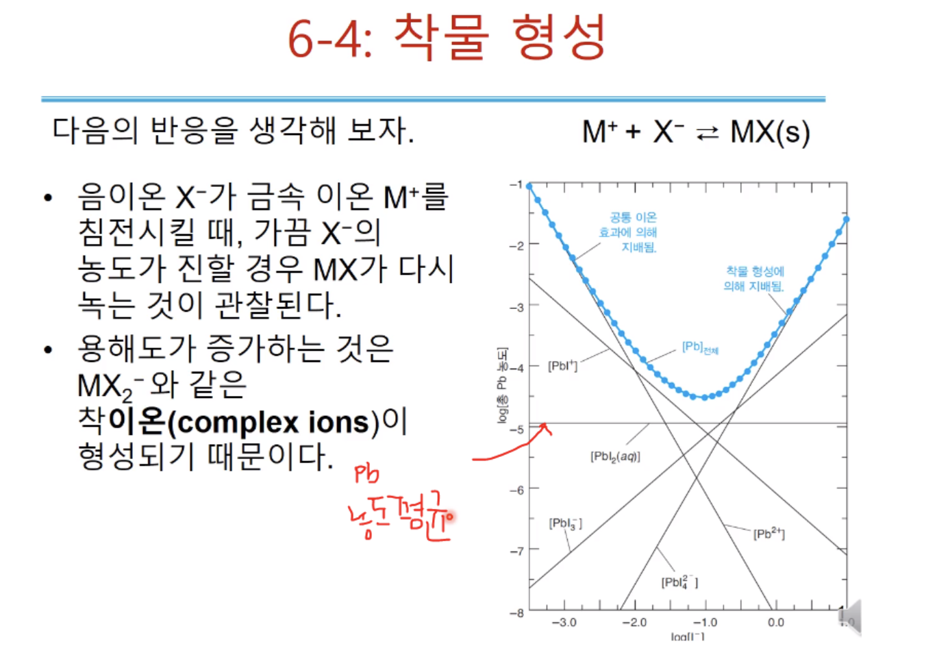 요오드 이온 하나 더 붙으면 PbI3-가 돼서 용해도가 늘어난다. (이온은 물에 녹기 쉬워서! ) 착이온 형성된다.