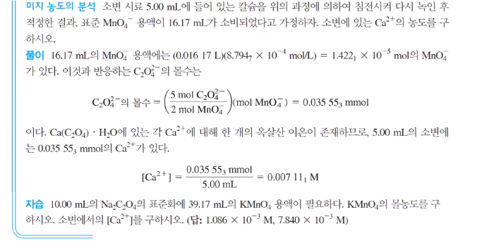 그럼 칼슘의 양을 쉽게 구할 수 있다. 1:1 반응이면 바로 옥살산 이온 몰과 같고 비율이 달라지면 몰 값도 달라진다.