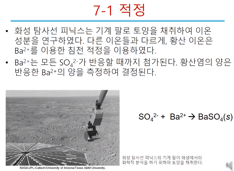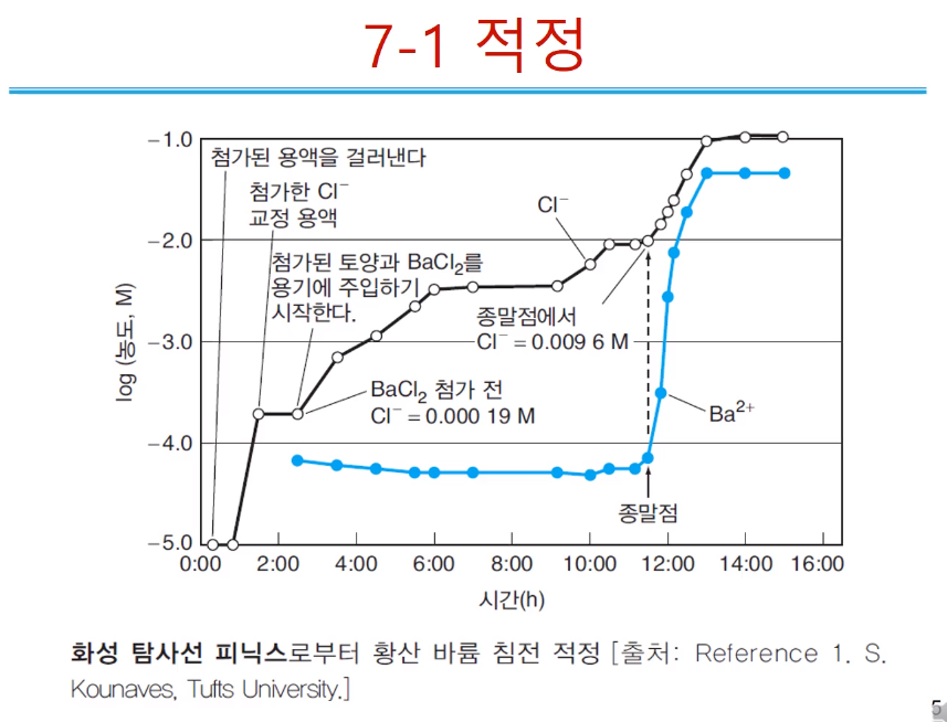 화성에 있는 토양에 이온 성분을 위해 적정반응을 이용한 예이다.