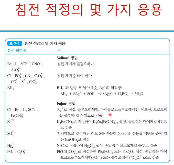 대표적으로 Volhard , Fajans 방법의 원리를 기억하자!!!