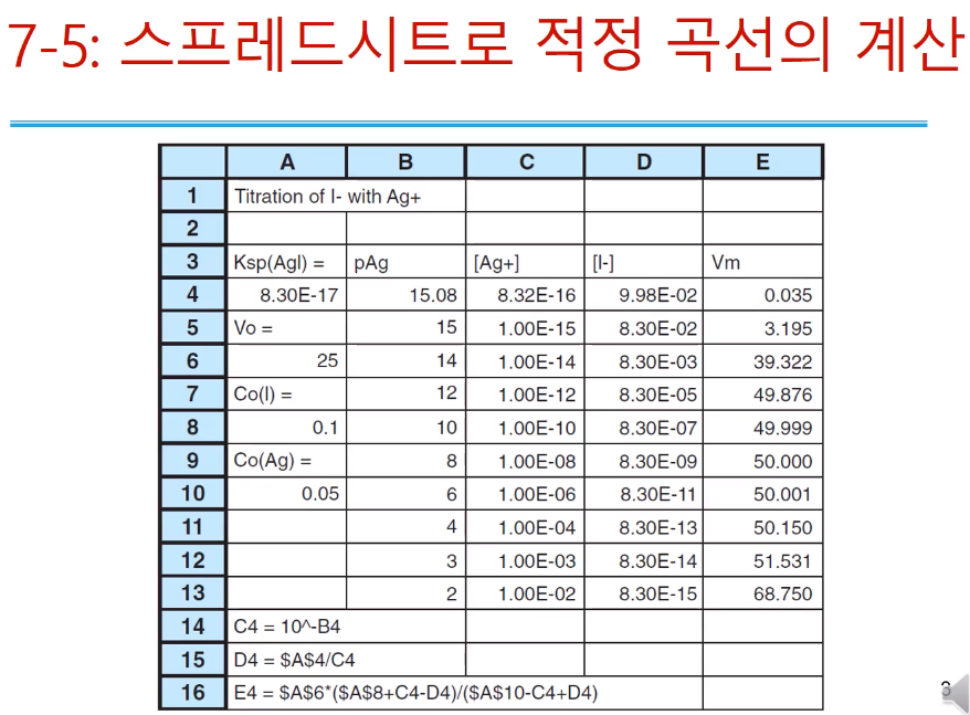 이전 시간에 침전 적정 곡선 포맷, 곡선 그리는 방법, 곡선이 의미하는 바, 당량점을 찾을 때 어떤 곡선의 형태가 유리한지 봤다.