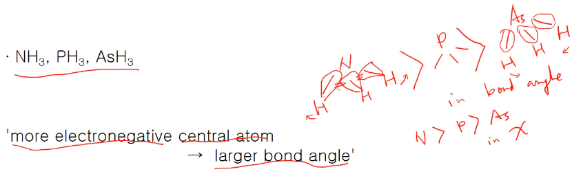 → 중심 원자 경우 전기음성도가 커질수록 결합각이 커집니다.